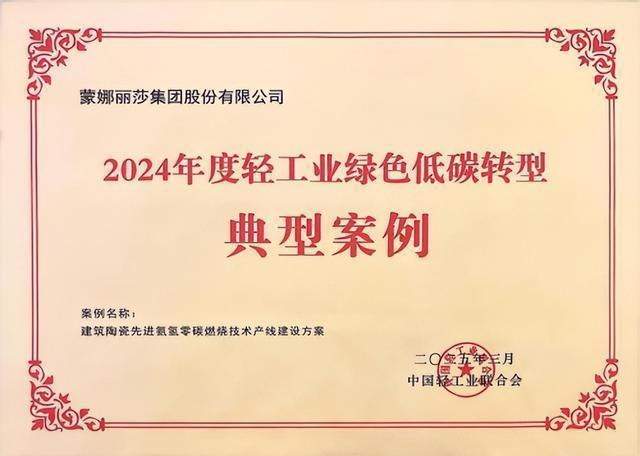据介绍,蒙娜丽莎氨氢零碳燃烧技术量产生产线经过运行,已实现平稳、可靠,陶瓷板/砖年产量150万平方米,100%纯氨燃烧后减碳5,200吨/年。该生产技术已成熟,可复制推广。凭借在绿色创新和可持续发展方面的突出表现,公司获颁“广东碳标签证书”。